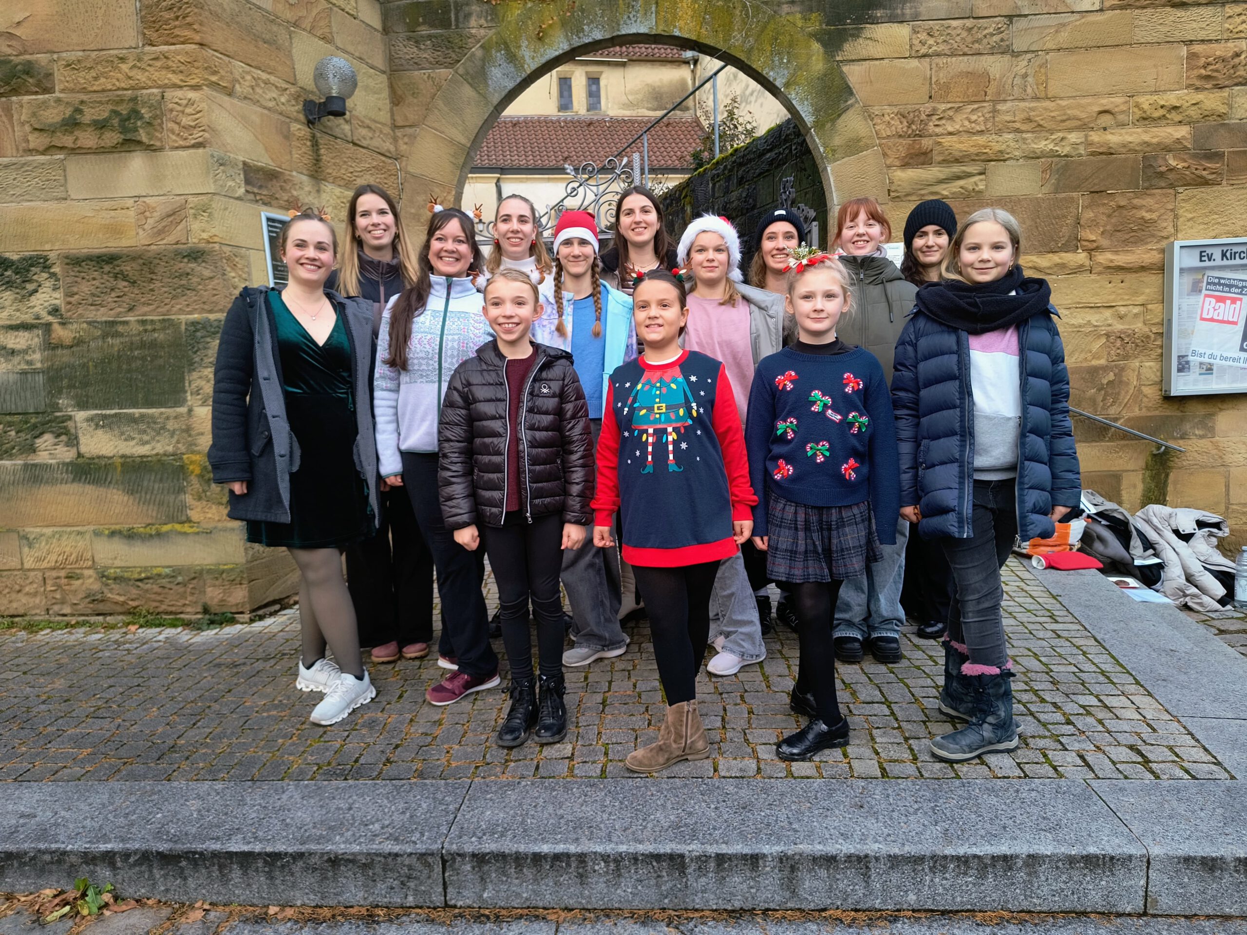 Gleich zwei Auftritte standen in der letzten Woche an. Ein Auftritt bei der Weihnachtsfeier des VDK Steinenbronn auf einer wundervoll geschmückten Bühne und einen, wie jedes Jahr, beim Weihnachtsmarkt in Hildrizhausen. Trotz einigen krankheits- und verletzungsbedingten Ausfällen waren beide Auftritte ein voller Erfolg. Insbesondere unsere sechs beginners und primary Tänzerinnen Ida, Suvi, Emily, Zoë, Lucy und Sophia unterstützten das Team ganz besonders.